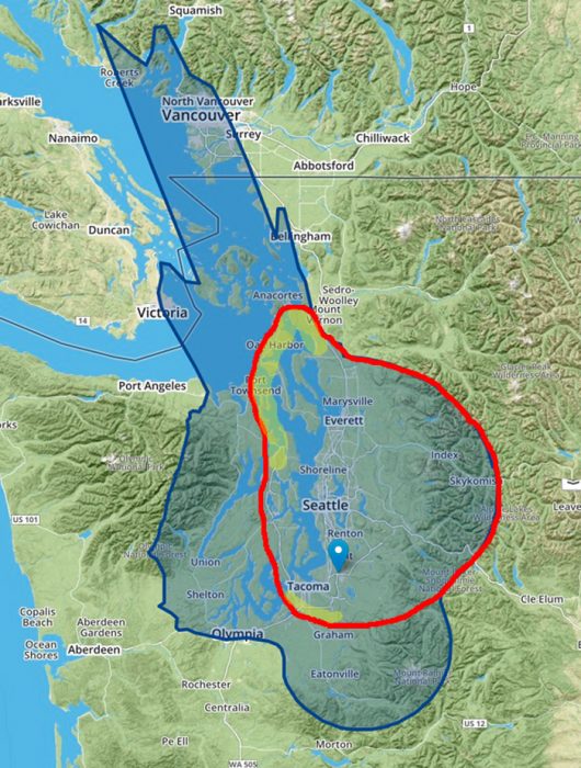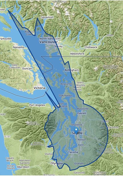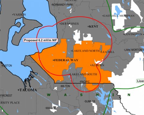 The on-going Covid-19 pandemic has caused great distress in the commercial broadcast market! Multiplied millions of dollars in advertising have been cancelled and commercial stations are hurting! So much so that numerous stations around the nation are at least temporarily (and some permanently) closing up shop (going silent). That's the bad news. The good news is that several of these stations are available for purchase at a considerable savings! One such station (now silent) has operated in the Seattle/Tacoma market since late-1950s and most recently addressed the territory mapped below.