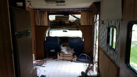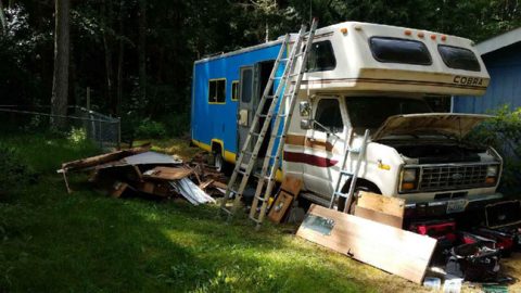 The Old External Tool/Supplies Box Removed. Years of NW weathering had destroyed the Plywood.
