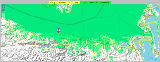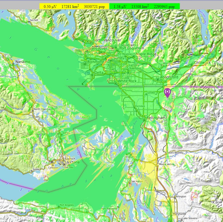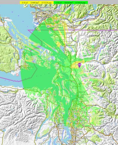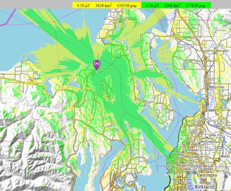 While this prediction is also based upon typical equipment performance histories, and the known terrain, actual performance exceeds the immediate Port Townsend area with coverage into a portion of east Sequim.