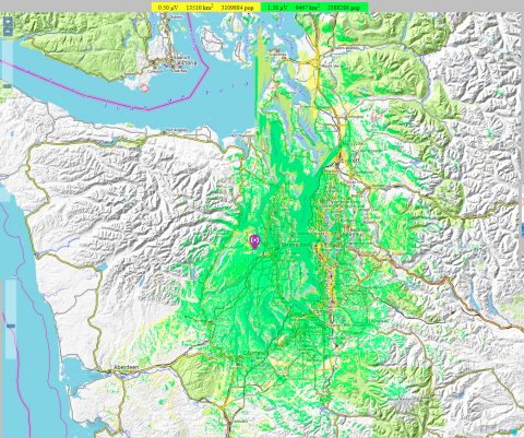 Beyond the coverages, listed above, of Oly-Comm repeaters 1, 2 and 3, there are other GMRS repeaters providing service for the Puget Sound and Olympic Peninsula region. These are also operated by visionary individuals interested in the well-being of residents in the region. Similar predictive mapping, for those systems, will be displayed here as the necessary details become available. Regional disaster-response repeater operators have a strong sense of helping-when-they-can and are happy to partner together in times of need.